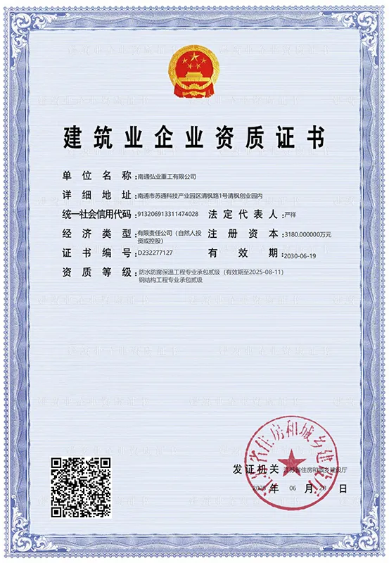 ООО Нантун Хунъе Тяжёлая Промышленность— общество с ограниченной ответственностью, специализирующееся на производстве стальных конструкций для мостов, судов и внешней торговли. Компания расположена в Наньтуне, провинции Цзянсу, первом современном городе Китая, и может похвастаться живописными пейзажами, богатой культурной жизнью и богатыми ресурсами, удобно расположившись на побережье. Компания была основана в марте 2015 года председателем правления Янь Сяном. Уставный капитал компании составляет 31,8 млн юаней. Производственная база расположена на заводе Роншэншэн Хэви Индастри в порту Ругао города Ругао с годовой производительностью 150 000 тонн. В условиях жесткой рыночной конкуренции компания придерживается корпоративного девиза: «Честное отношение к людям, победа за счет качества и приоритет репутации». Используя свою прочную рыночную репутацию, обширный опыт производства стальных конструкций и специализированные технические знания, компания занимается изготовлением и монтажом различных стальных конструкций. Компания успешно поставила множество продукции отличного качества, заслужив широкое признание клиентов и высокую репутацию на рынке тяжелой промышленности.